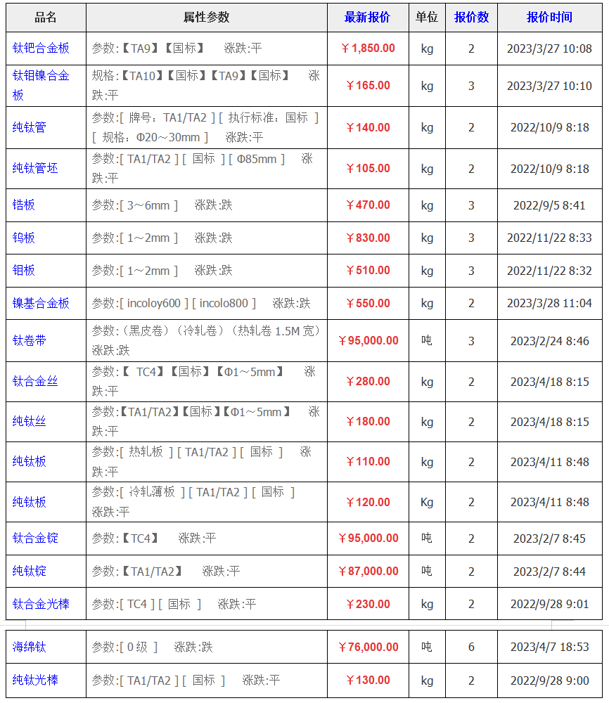二、國內(nèi)市場海綿鈦價格行情 (20230417)