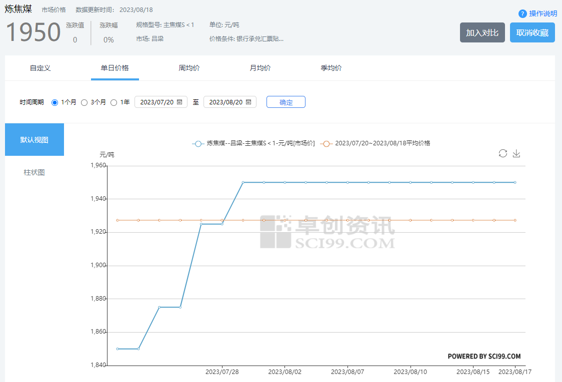 二、呂梁地區(qū)近一月主焦煤價格變化曲線